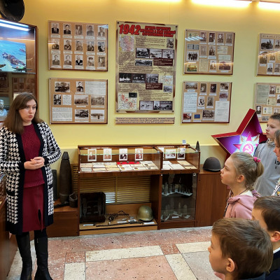 Об этом событии учащимся Таловской детской школы искусств рассказали в районном краеведческом музее. Научный сотрудник Ирина А. познакомила ребят с экспонатами зала Боевой Славы.