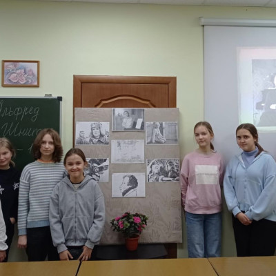 Большой музыкальный след композитор оставил не только в академической музыке, но и в кинематографе. Дети слушали музыку, смотрели отрывки из фильмов «Горячий снег», «Сказка странствий», мультфильм «Карандаш и ластик» и другие картины, в которых музыка Шнитке стала неотъемлемой частью режиссерского замысла. Рассмотрели выставку иллюстраций к фильмам «Дядя Ваня», «Сказ про то, как царь Петр арапа женил», «Горячий снег» и мультфильмам «Я к вам лечу…», «Осень».