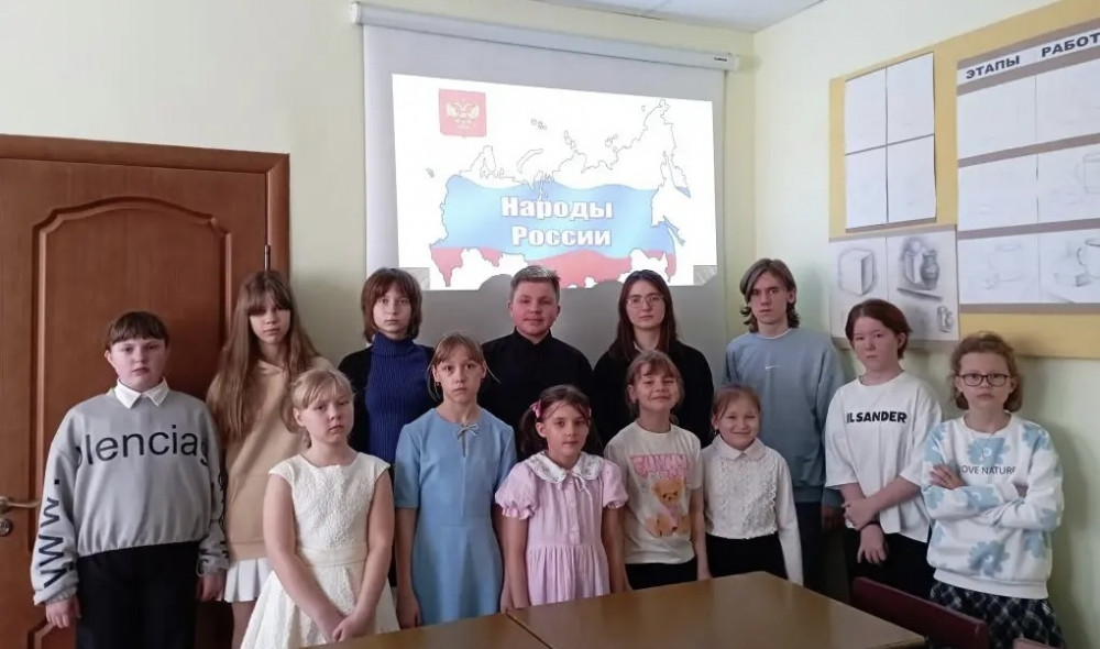 Сегодня для учащихся отделения изобразительного искусства класса Аллы Ивановны Петриёвой прошёл арт-час, посвящённый Году единства народов России.