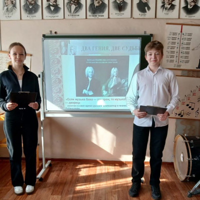 5 апреля, преподаватели детской школы искусств Наталья Константиновна Ш. (фортепианное отделение) и Любовь Михайловна Н. (отделение народных инструментов) провели для учащихся своих классов лекцию-концерт «Бах и Гендель: два гения и две судьбы».