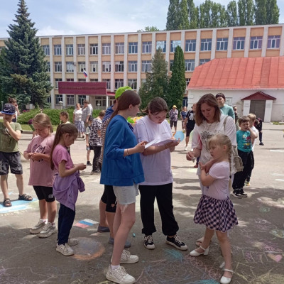 После праздничного концерта для детей провели игровую программу «Свистать всех наверх!» и конкурс рисунков на асфальте. Итоги конкурса рисунков подвело жюри из выпускников отделения изобразительного искусства Варвары О. и Марины З. во главе с преподавателем Таловской ДШИ Аллой Ивановной П. Они выбрали лучшие работы.