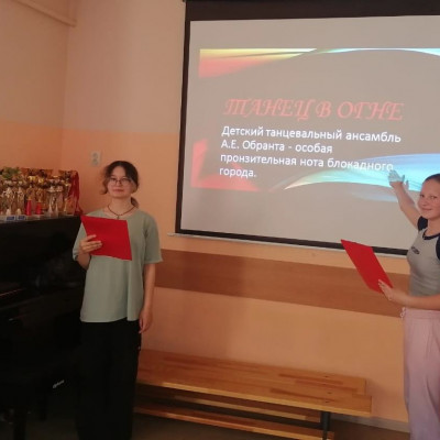 На отделении «Хореографическое творчество» прошло классное мероприятие «Танец в огне», на котором учащимся показали кадры из фильма «Мы смерти смотрели в лицо» и рассказали о создании хореографического коллектива под руководством Аркадия Ефимовича О.