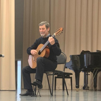 После мастер-классов перед собравшимися выступил преподаватель по классу гитары Сергей Николаевич К.