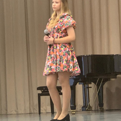 Фортепианное отделение представляли воспитанники Тамары Васильевны Б. Полина П. и Валерия П. От народного отделения в мастер-классе участвовали ученики Любови Михайловны Н. Владимир К., Владимир Т. и ученик Валерия Ивановича Ч. – Матвей К., от отделения сольного пения – воспитанники Наталии Владимировны Р. – Матвей К. и Дарья Д.
