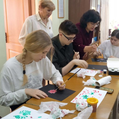УЧЕНИКИ ОБЩЕОБРАЗОВАТЕЛЬНОЙ ШКОЛЫ ПОД РУКОВОДСТВОМ ПЕДАГОГА ДЕТСКОЙ ШКОЛЫ ИСКУССТВ УЧИЛИСЬ РОСПИСИ В ОДИН МАЗОК