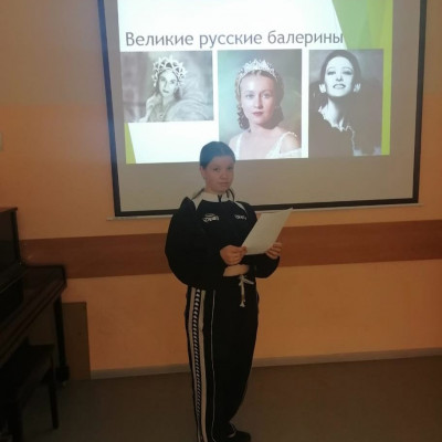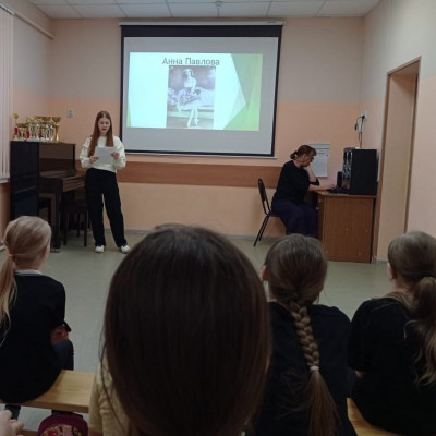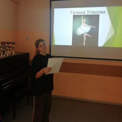 На отделении «Хореографическое творчество» преподаватель Инна Александровна М. с учениками старших классов подготовили и провели классное мероприятие, посвящённое Анне Павловой, Галине Улановой, Майе Плесецкой.