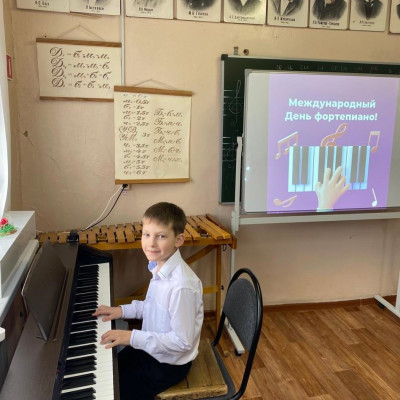 Праздник, посвященный Всемирному дню фортепиано, прошёл в детской школе искусств в последний день весенних каникул – 31 марта. В нём поучаствовали ученики фортепианного отделения, класс педагога Тамары Васильевны Б., и вокального отделения, класс педагога Наталии Владимировны Р.