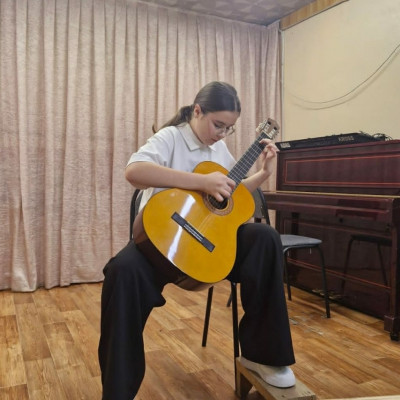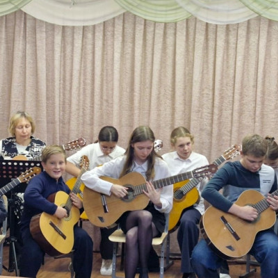 В классе преподавателя Ирины Геннадьевны П. прошло праздничное мероприятие, посвящённое Всемирному дню гитары. Ученики вместе со своим преподавателем, отмечая этот праздник в предпоследнюю неделю первой учебной четверти, подготовили концерт, песни, игры, конкурсы, загадки, посвящённые любимому музыкальному инструменту. В заключение праздника - коллективное музицирование. В составе гитарного ансамбля впервые приняли участие начинающие гитаристы – ученики 1 класса.