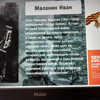Классный час «Казалось, он не слепой» познакомил ребят с героическими биографиями Ивана Маланина и Миши Попова – незрячих баянистов, чья жизнь и творчество были связаны с Великой Отечественной войной. Дети прослушали запись произведений в исполнении баянистов, прочли отрывки из поэмы Алексея Суркова, посвященной Мише Попову.